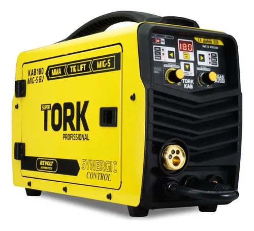 MIG SEM GÁS: Aço Carbono, Ferro Fundido, Metalon, Perfil Metálico, Chapas Automotivas, Carrocerias, Estruturas metálicas e outros materiais ferrosos.Características gerais Marca: Super Tork Linha: KAB Modelo: KAB 180 MIG-S BV Cor: Amarelo/Preto Voltagem: 127V/220V Modelo detalhado: IMETS-8180-BV